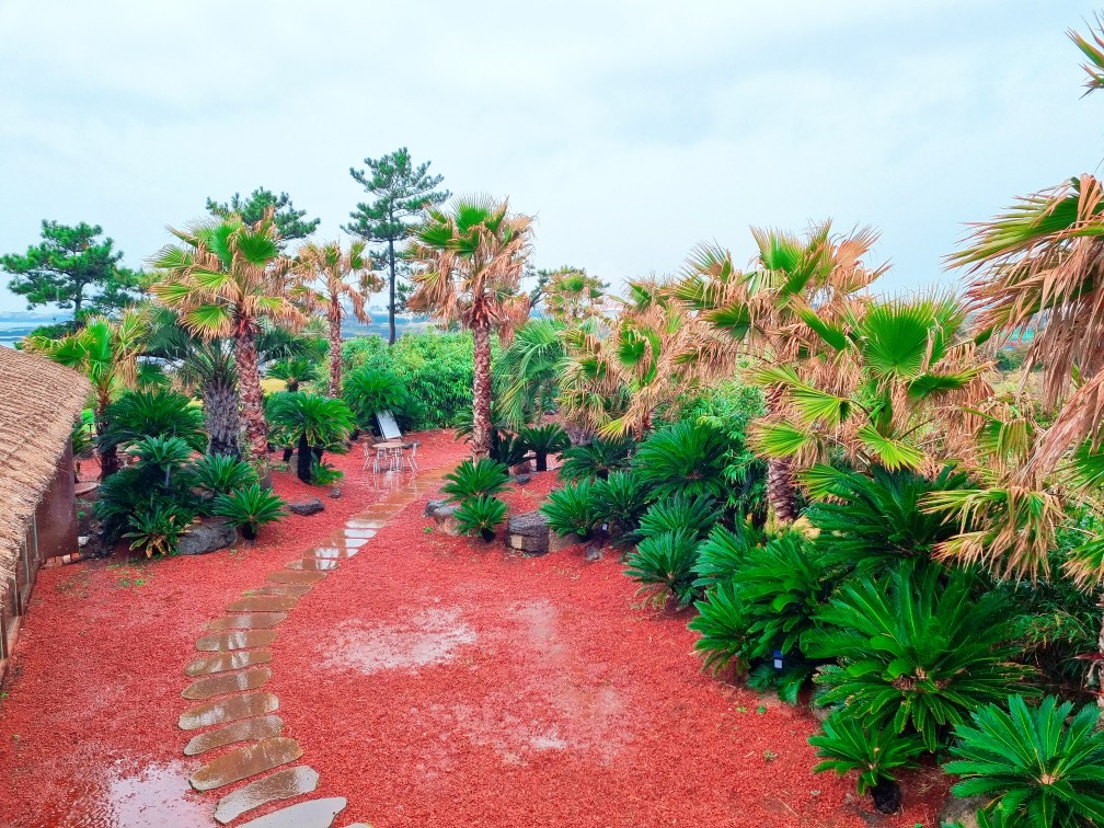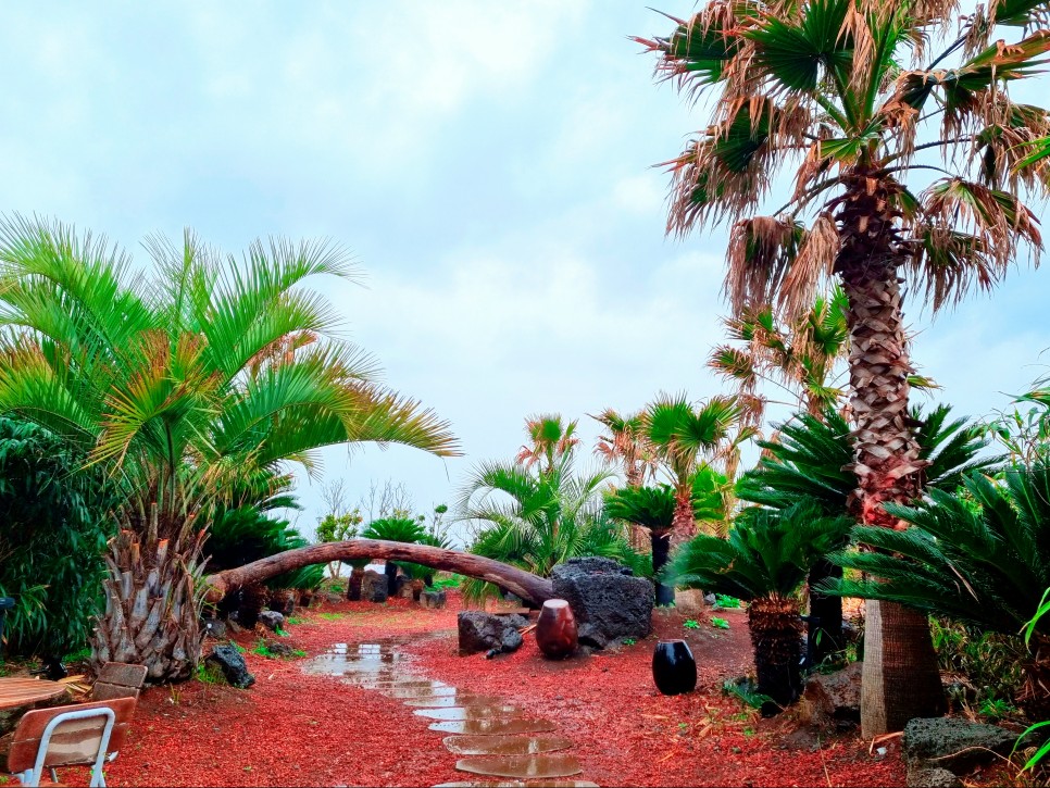 아담하게 조성된 정원에서 제주스러움을 한껏 느끼며, 나름 운치 있는 빗길 산책을 했습니다.