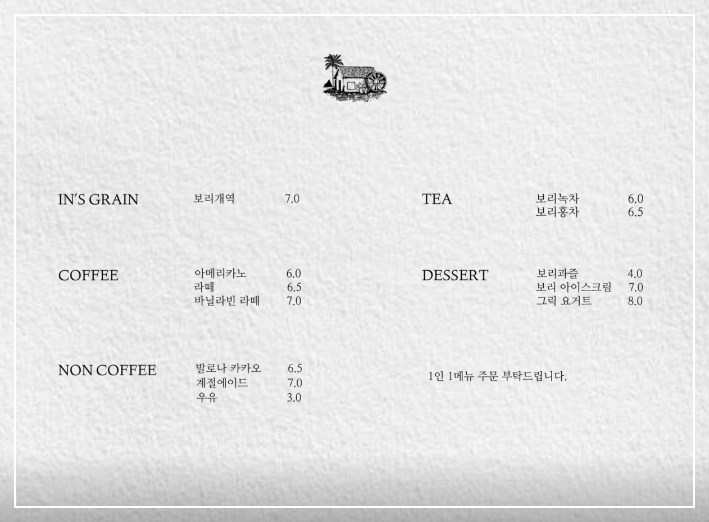 인스밀은 곡물 창고를 개조해서 만든 곳이고 그에 어울리는 시그니처 메뉴 보리개역이 있습니다.