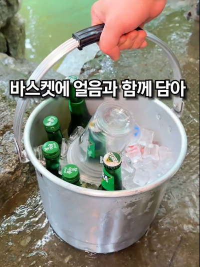 주류를 주문하면 얼음 가득한 바케스에 담아서 나와서 시원하게 마실 수 있습니다.