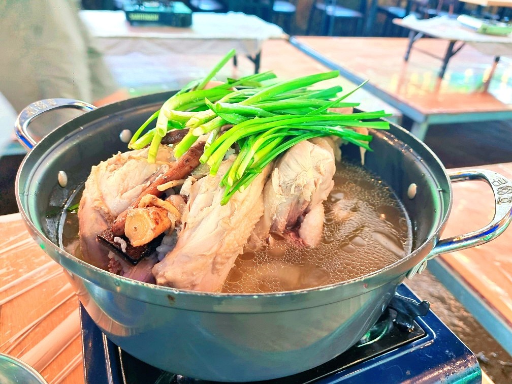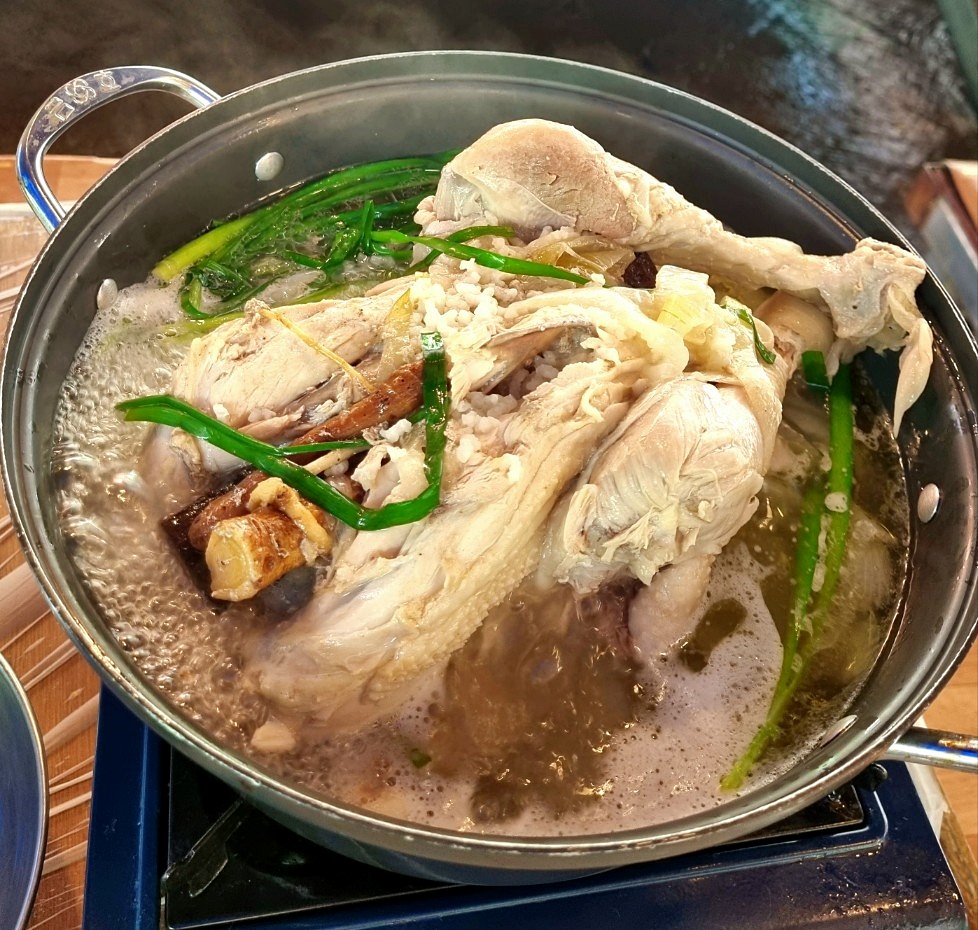 보글보글 끓으면 닭을 건져 먹고, 죽을 끓여 먹으면 됩니다.
