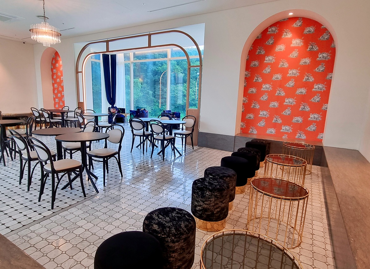 1층 야외, 미디어 아트, 2층의 인공 연못이나 대형 샹들리에, 3층과 4층의 저수지 뷰는
