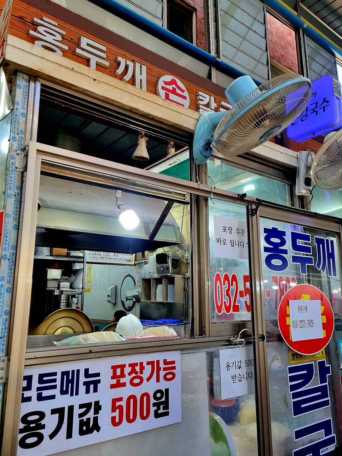 홍두깨손칼국수는 시장 안에 위치한 작은 가게로,