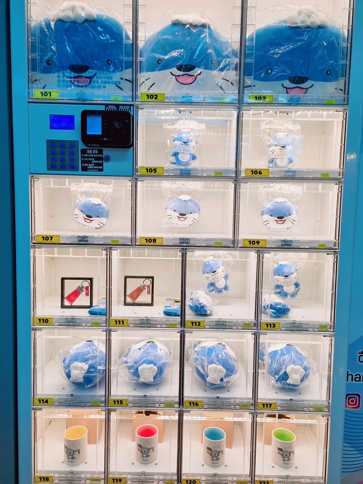 기념품 자판기가 신기하기도 하고 하모 기념품도 너무 귀여워서 한참 구경했습니다.