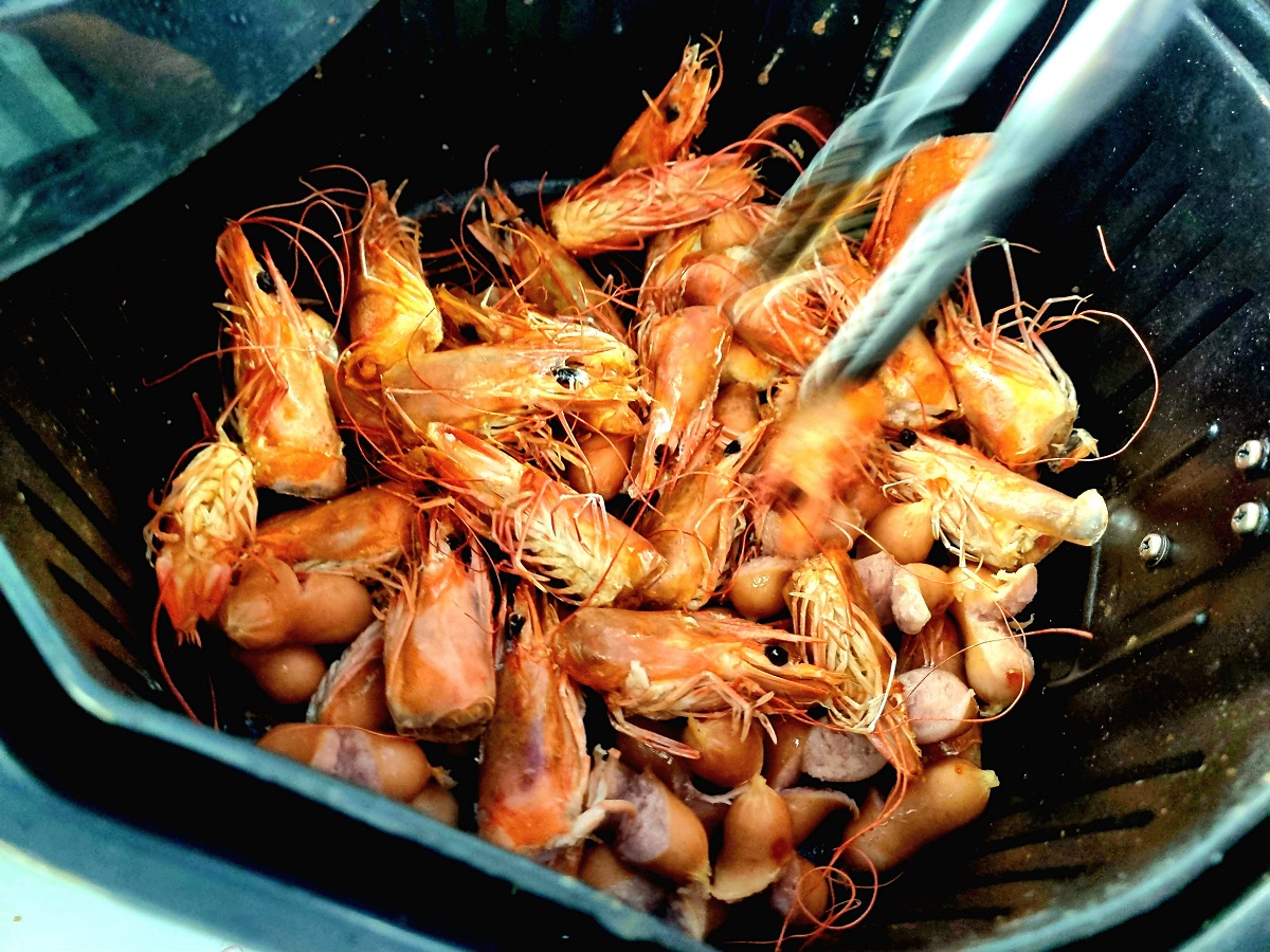 한 사람은 새우 머리를 에어프라이어에 구워주세요.