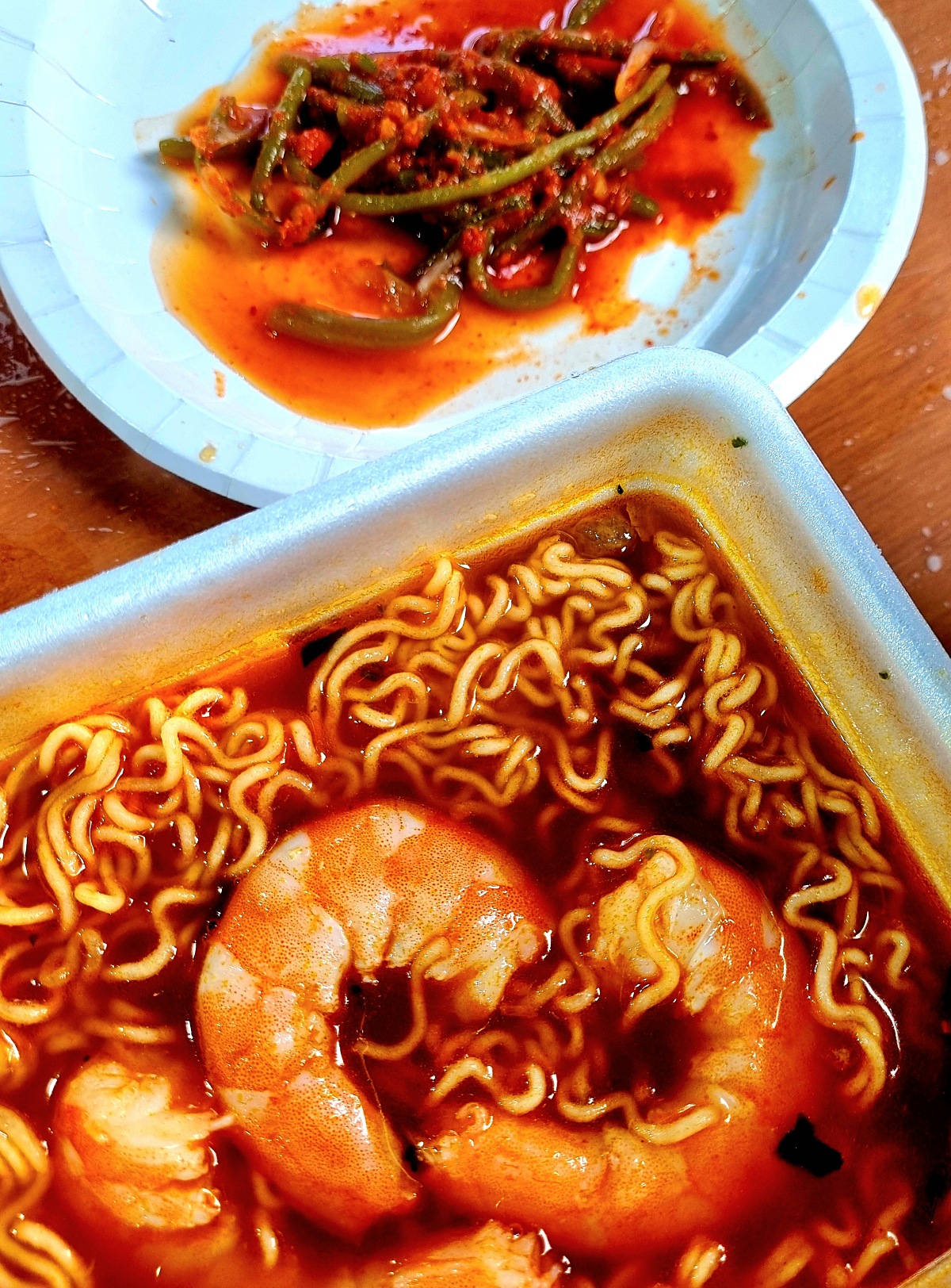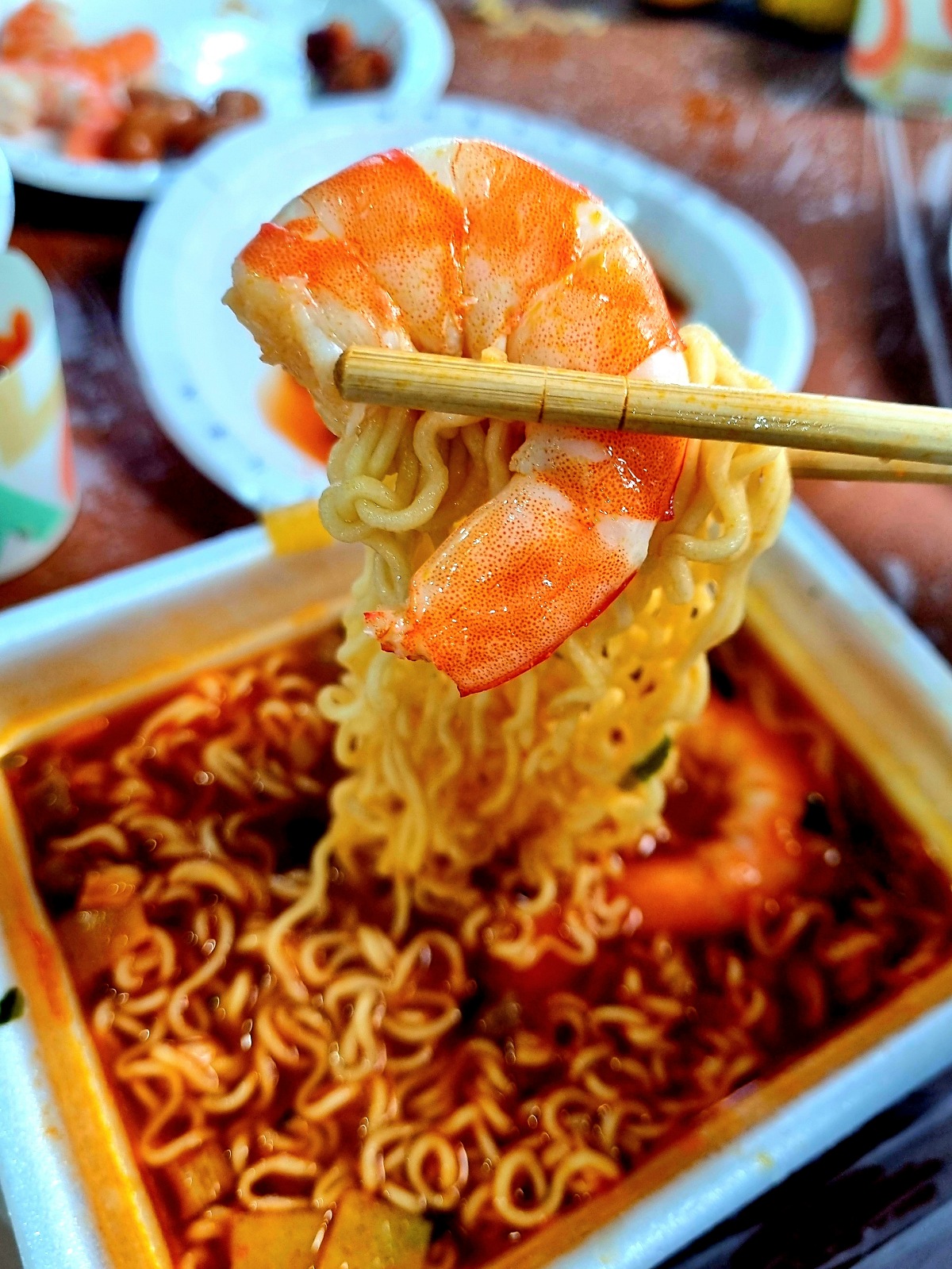 컵라면에 새우 머리와 새우 넣어서 먹는 것도 맛있습니다. :)