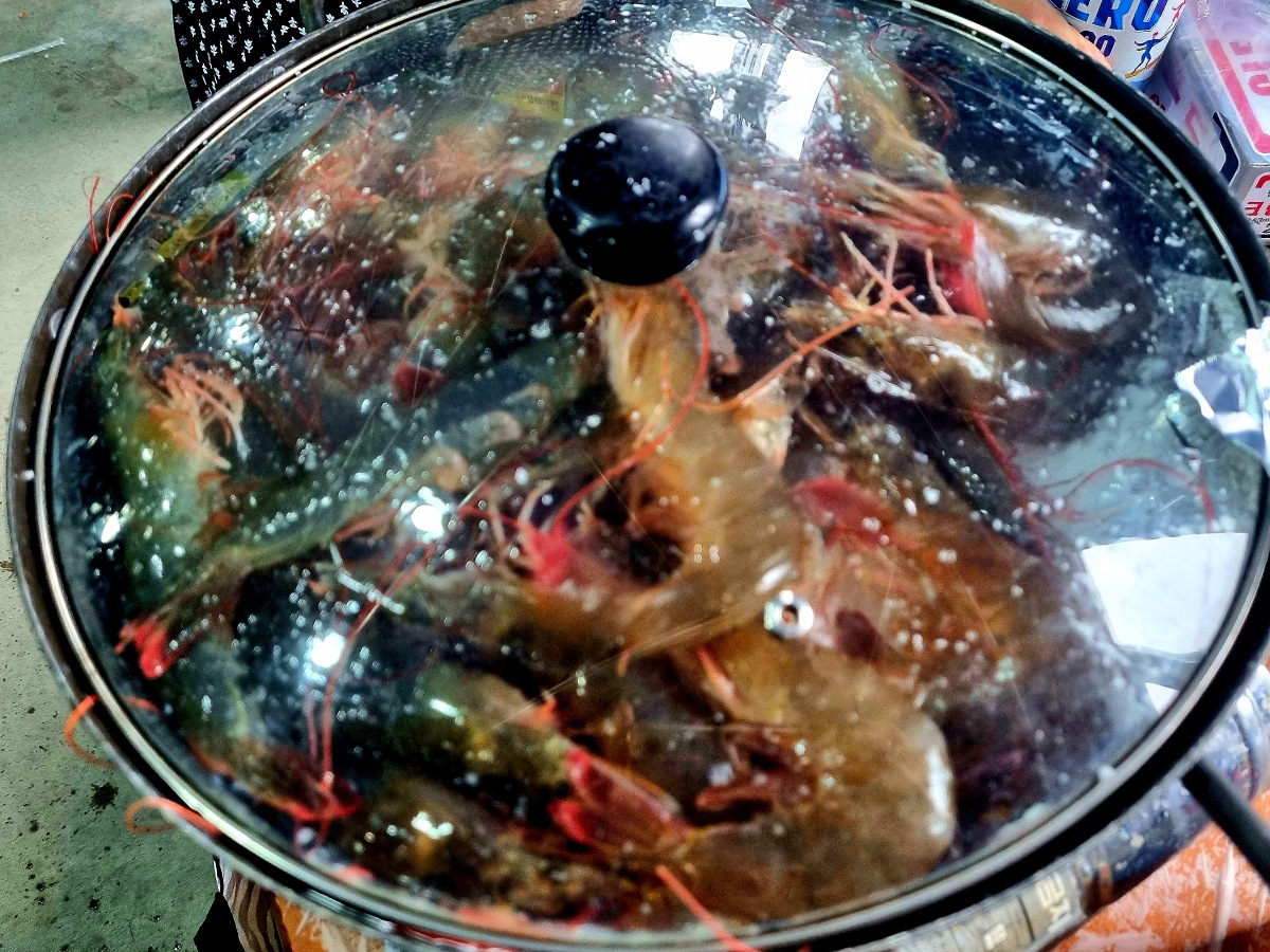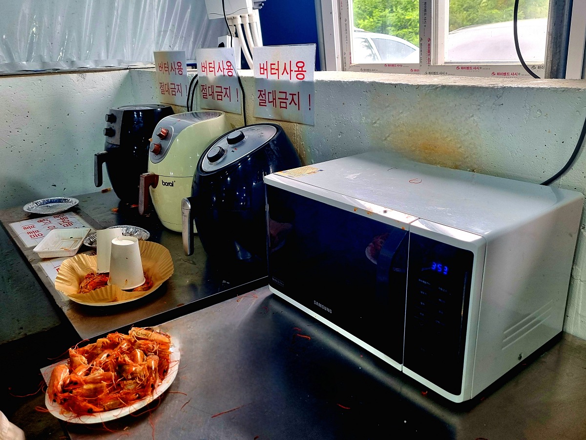 - 면장갑, 쇠젓가락: 뜨거운 새우를 더 쉽게 깔 수 있어요.