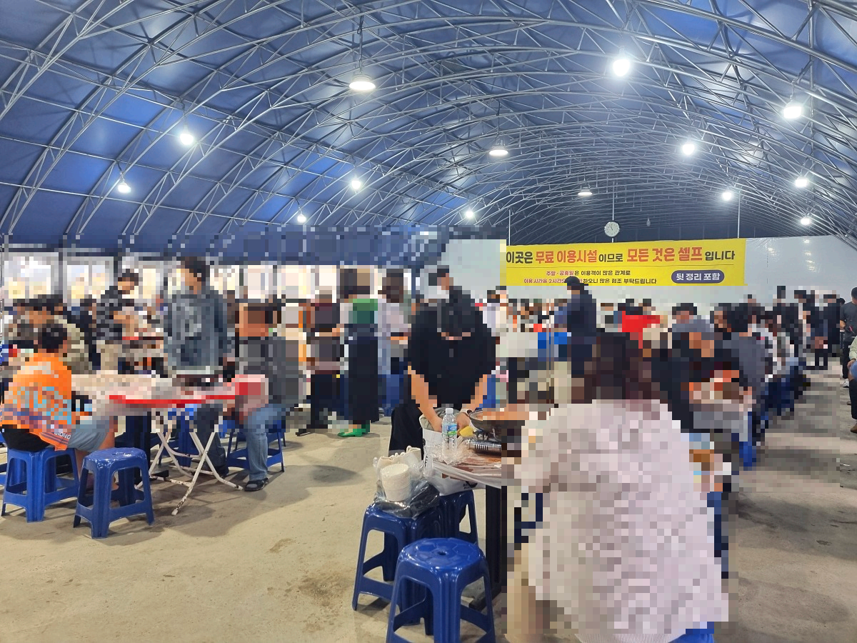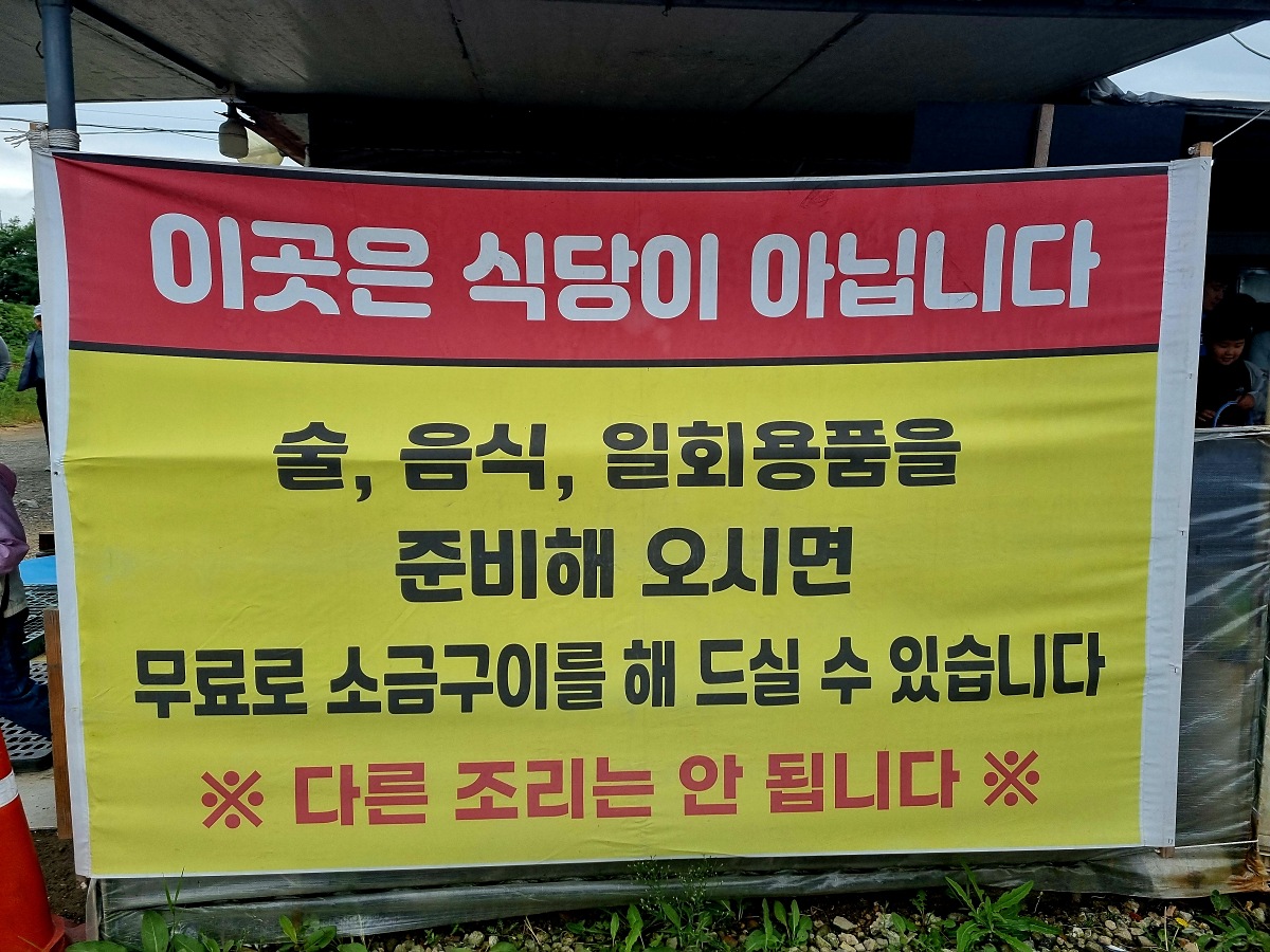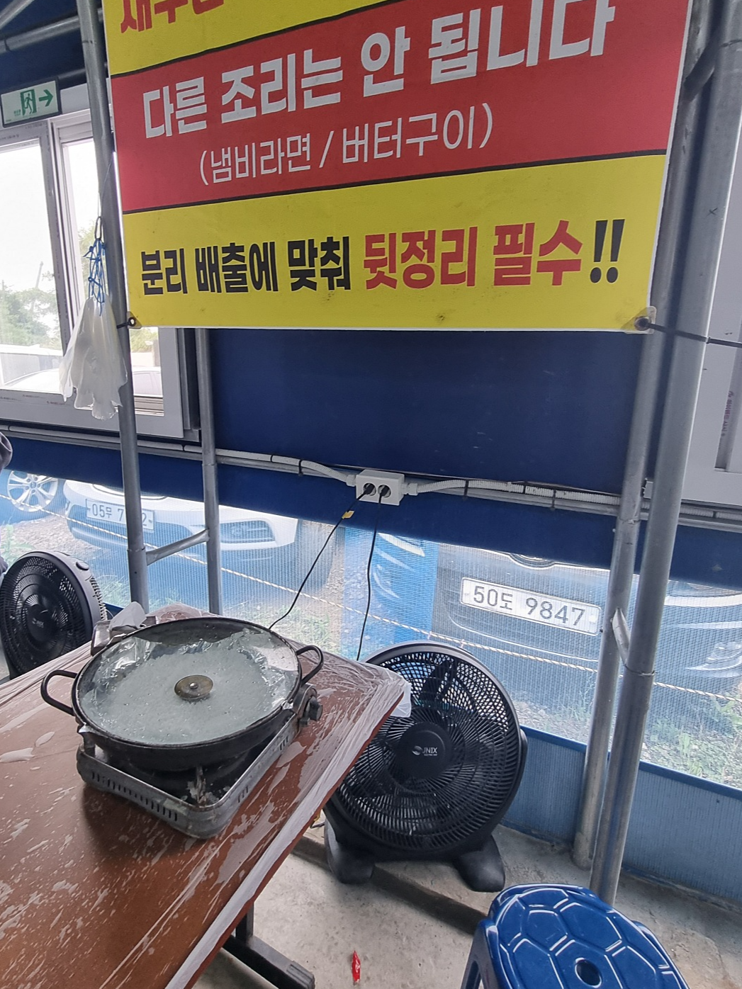 - 테이블, 의자, 버너, 굵은 소금, 비닐장갑, 휴지, 집게, 가위