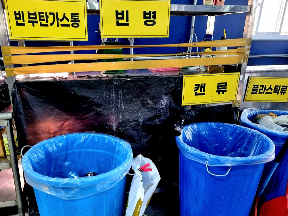 마지막으로 음식쓰레기, 일반쓰레기와 재활용 쓰레기 분리 수거하고
