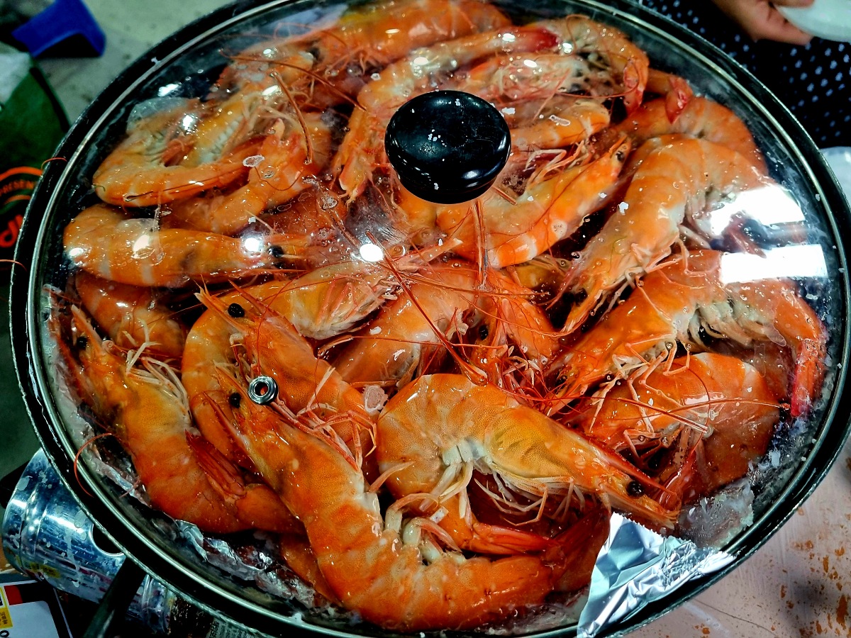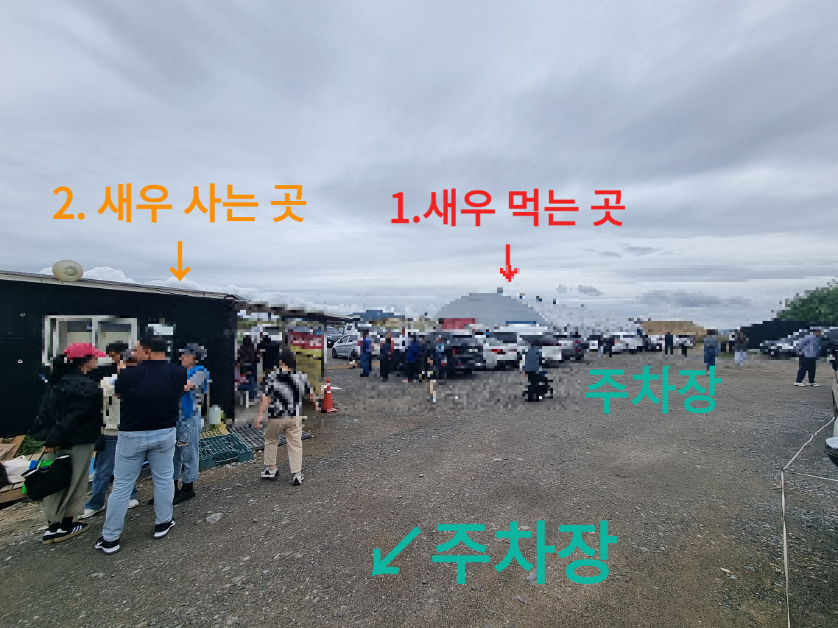 새우를 구입한 후, 먹는 장소로 와서