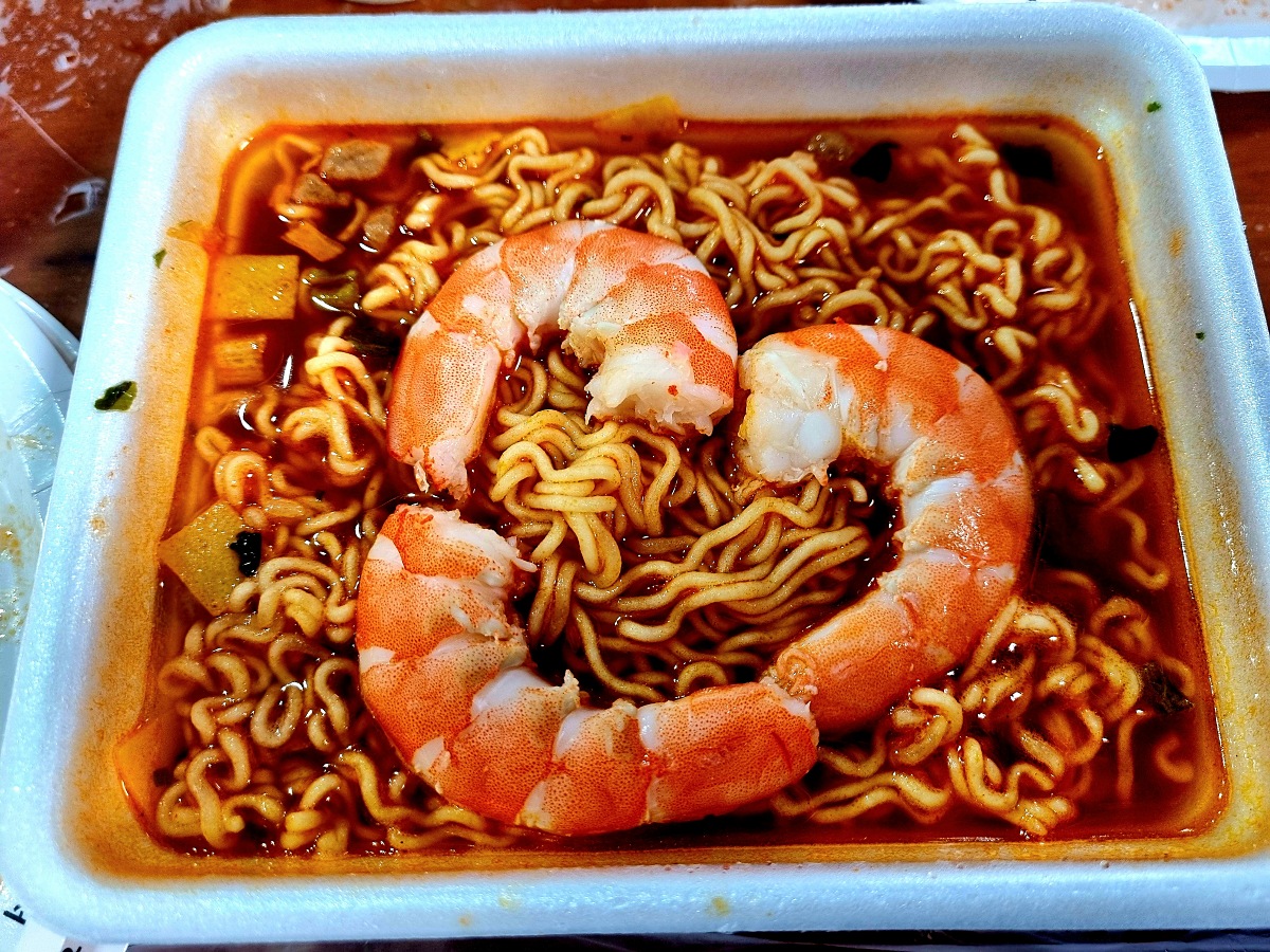 - 컵라면: 새우 넣은 얼큰한 국물의 컵라면 별미입니다. 새우탕도 좋아요.