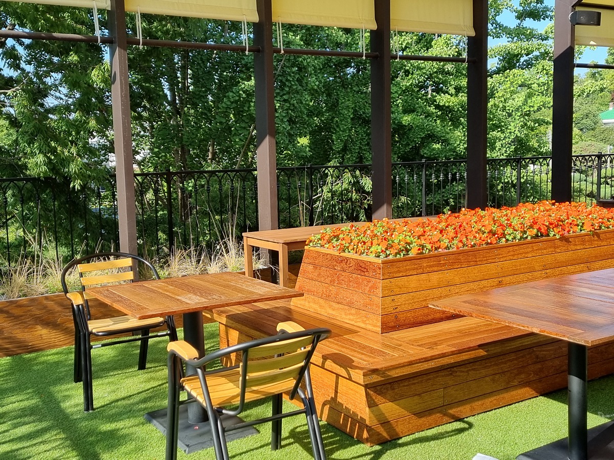이 중, 정원이 보이는 창가자리가 가장 인기가 많습니다.