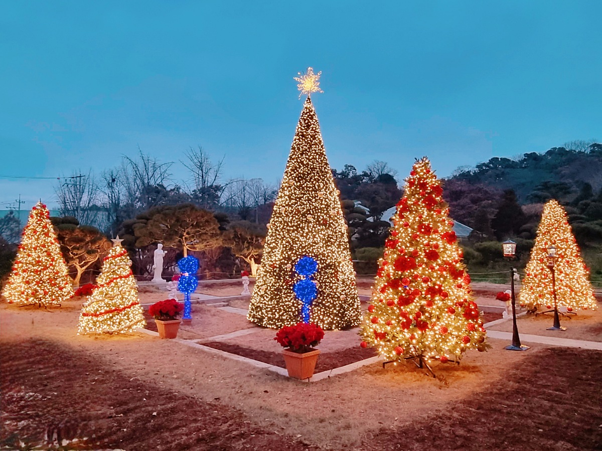 정원 또한 대형 크리스마스 트리와 다양한 모양과 조명의 크리스마스트리가 화려하게 장식됩니다.