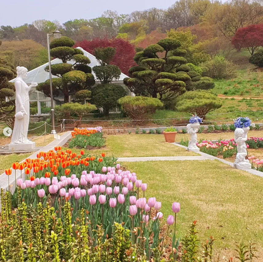 야외 정원에서 봄꽃을 보며 산책하기 좋습니다.