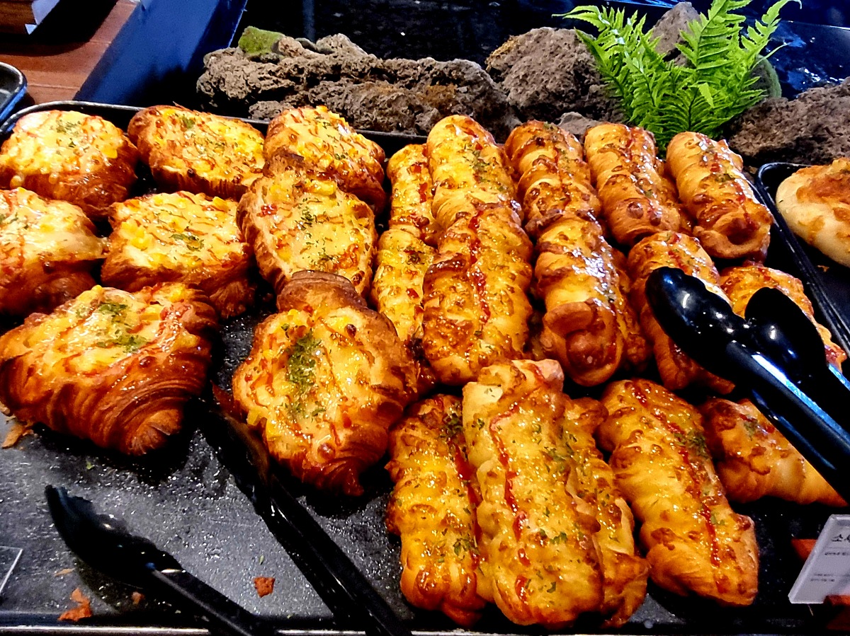 베이커리는 카운터 앞에 진열되어 있고 요즘 인기있는 종류의 빵들이 많았습니다.