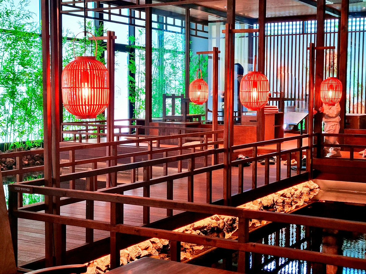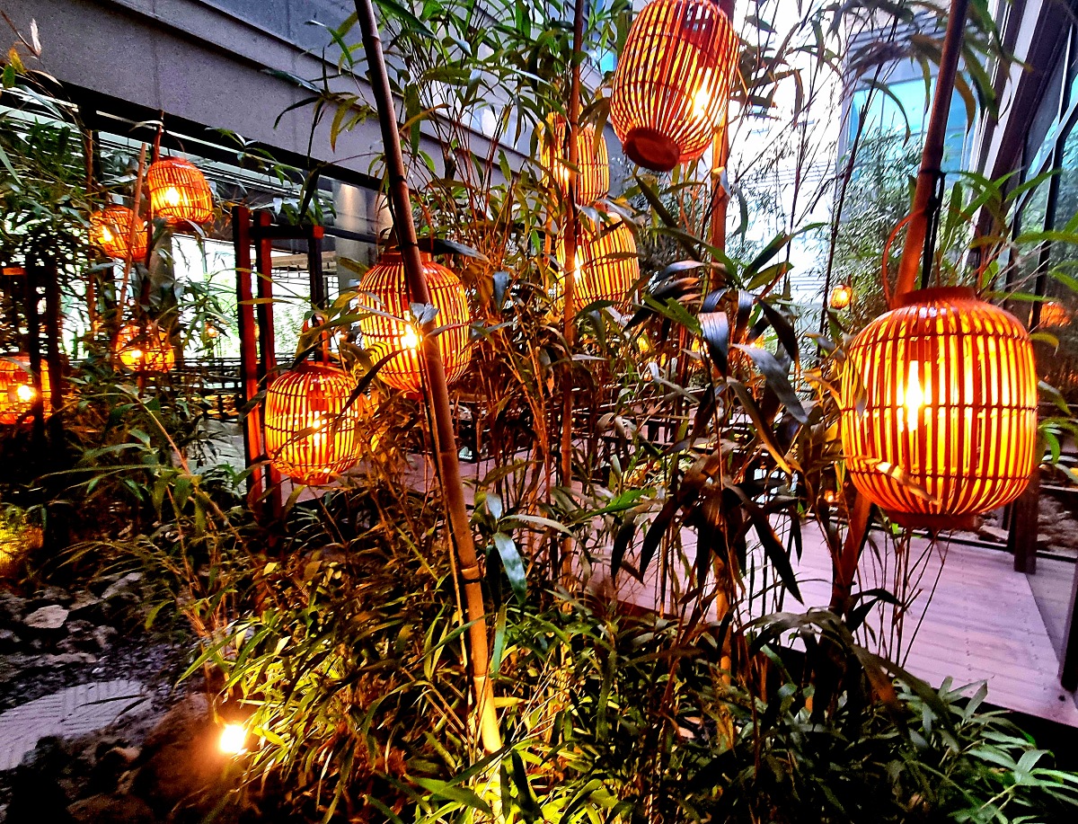 전통적인 동양 스타일의 등(燈)은 은은한 조명을 제공하여 차분하고 아늑한 분위기를 만들어 줍니다.