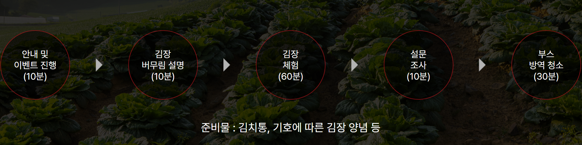- 체험 안내 김장 체험 (60분): 준비된 재료로 직접 김장을 담가보는 시간