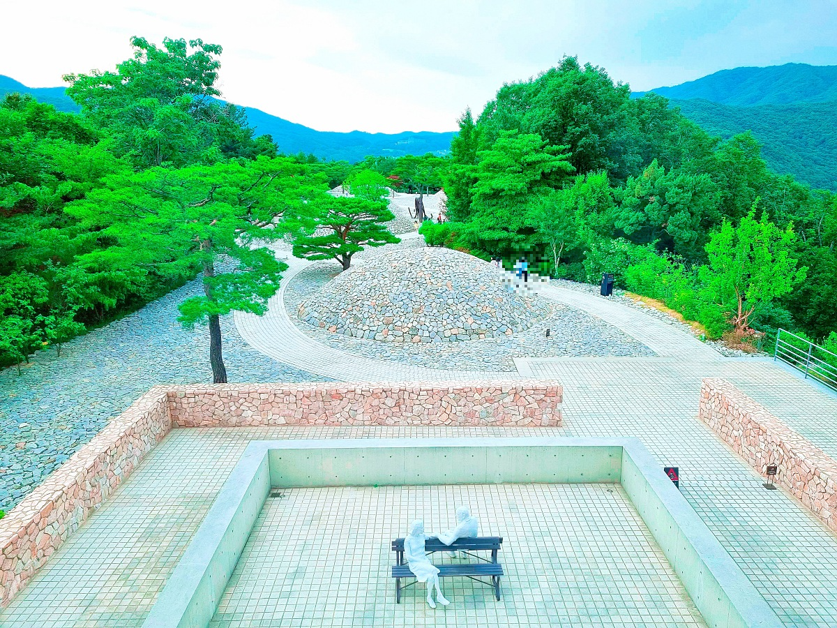 스톤가든은 신라 고분을 모티브로 한 돌 언덕 산책로입니다.