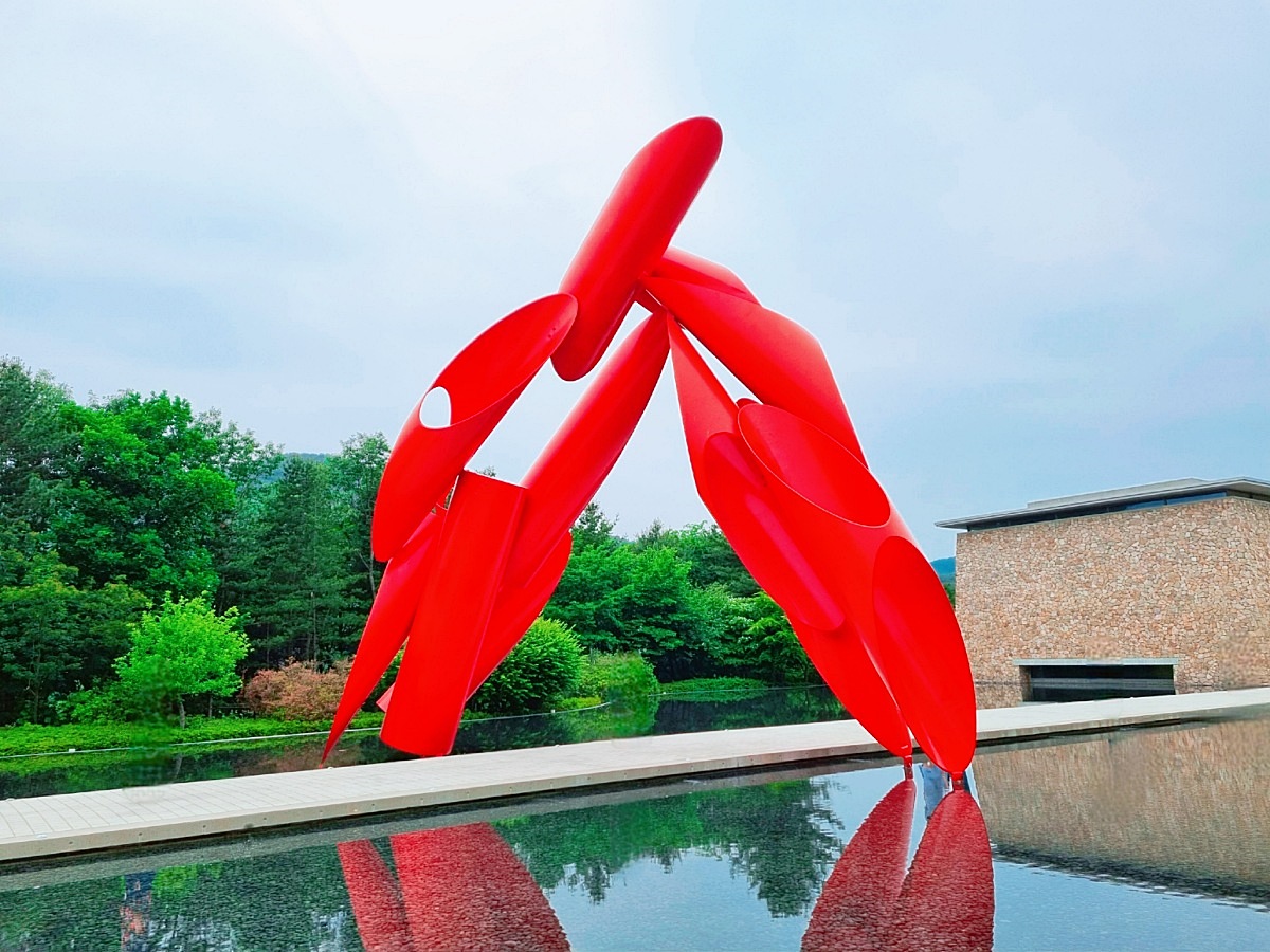 워터가든에서는 뮤지엄산의 소개 사진에서 가장 많이 보이던 물과 빨간 조각상이 있는 풍경을 볼 수 있습니다.