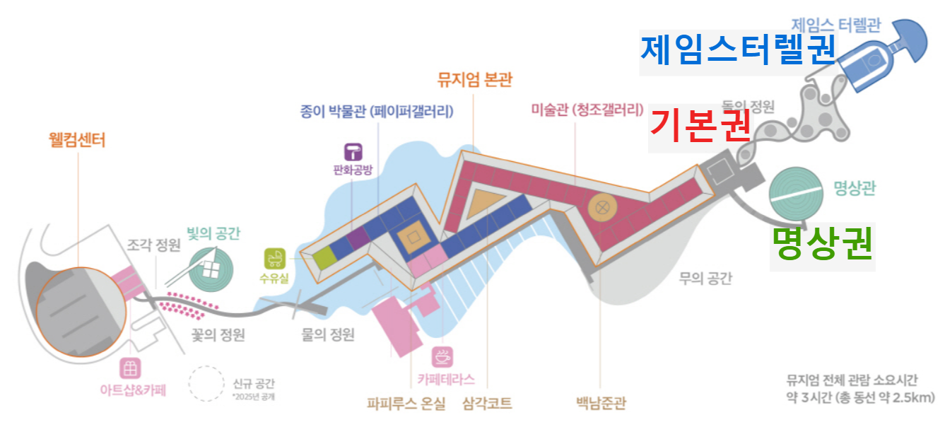 - 기본권 (1시간 소요): 웰컴센터 ~ 돌의정원까지 (명상관, 제임스터렐관 제외)