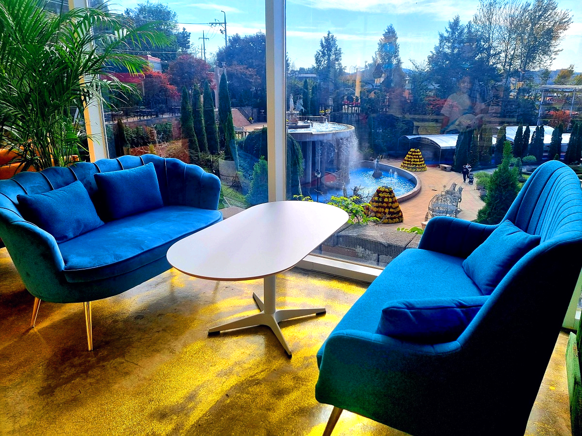 이런 다양한 좌석들과 멋진 정원 뷰로 가족, 연인, 친구와 모두 방문하기 좋은 곳인 것 같아요.