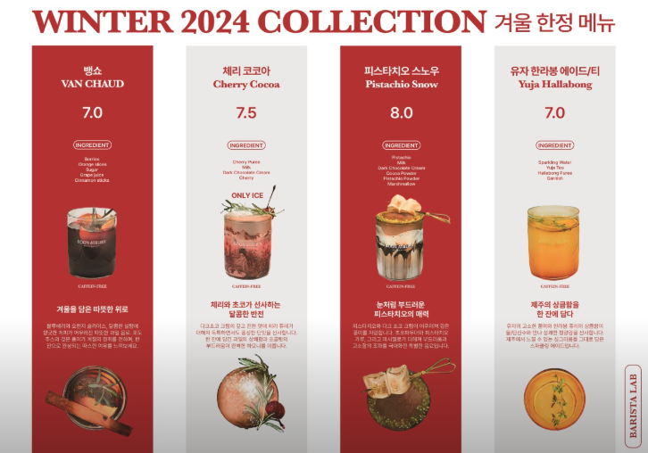 음료와 베이커리가 전체적으로 메뉴가 다양합니다.