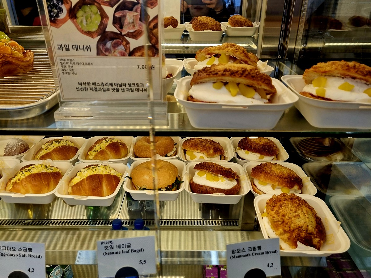 빵 고르는 사람, 사진을 찍는 사람이 다 모여 붐비고