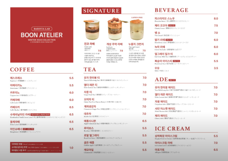 메뉴: 음료 및 베이커리
