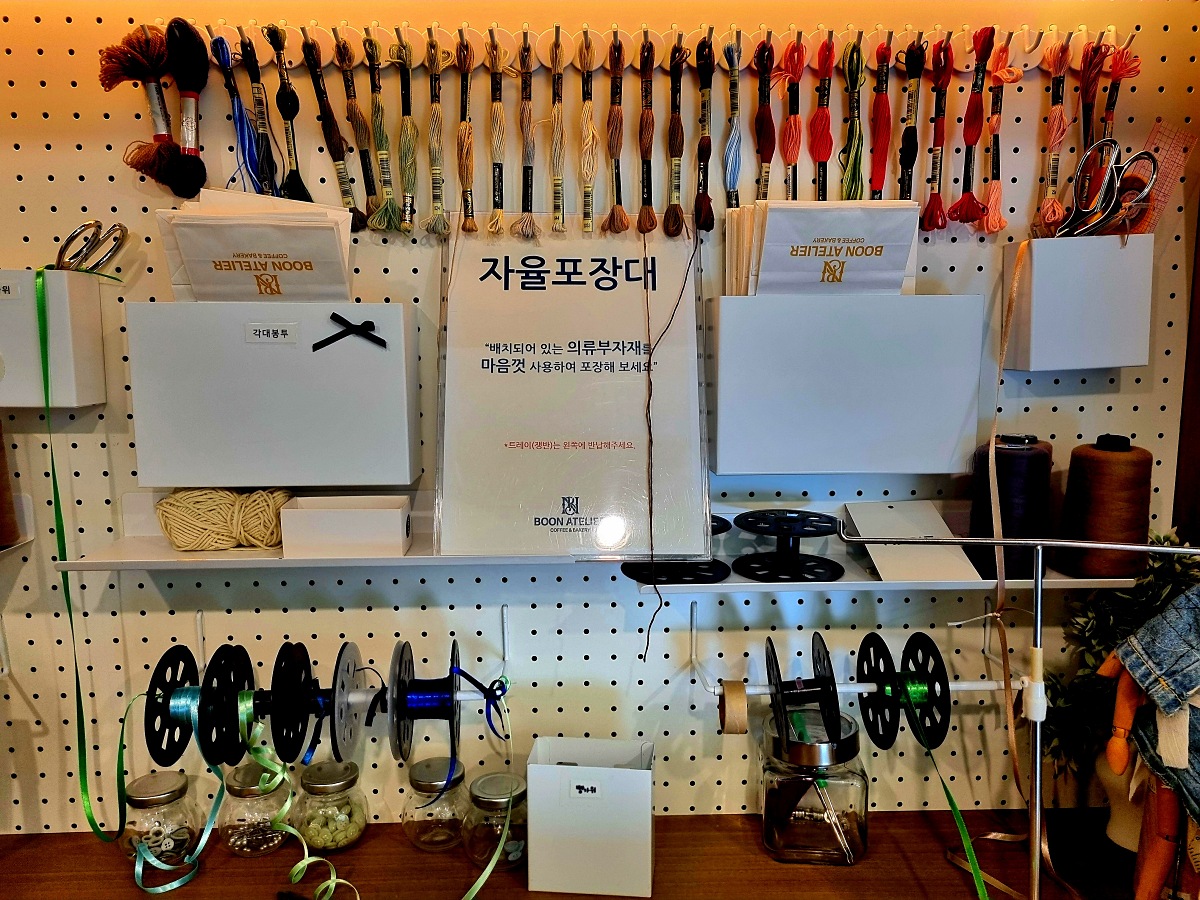 자율포장대는 옷 수선하는 곳 컨셉으로 되어있어서 얼핏 보면 그냥 인테리어나 구경하는 곳으로 생각돼요.