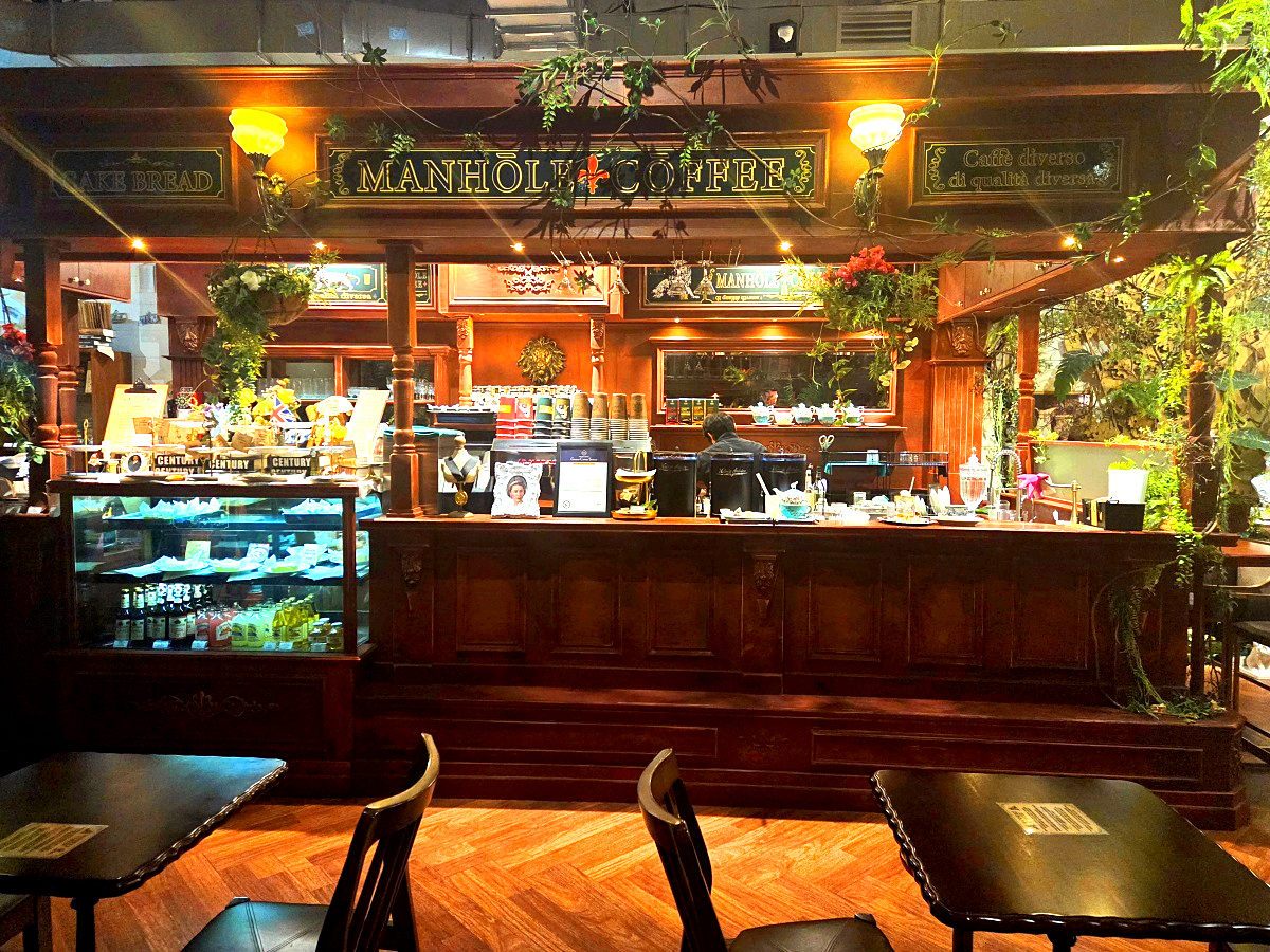 맨홀커피는 영국풍 인테리어와 스페셜티 커피로 유명한 카페입니다.