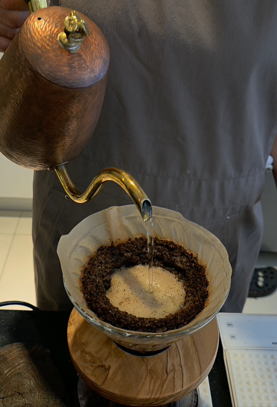 따듯하게 내려지는 핸드드립의 모습과 은은하게 퍼지는 커피 향으로