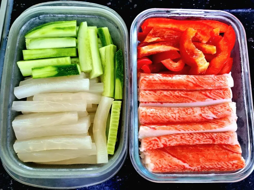 포두부, 파프리카, 오이, 단무지, 크래미