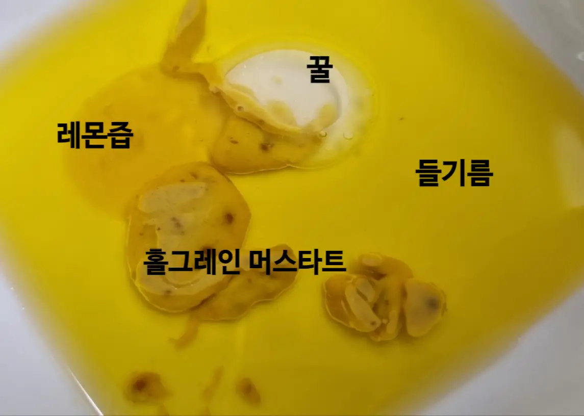 원래 올리브오일이 들어가는데 집에 없길래 들기름을 넣었습니다.
