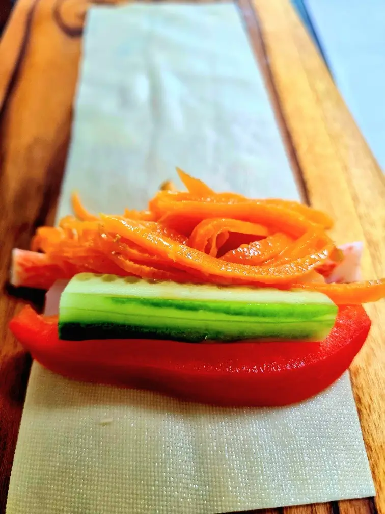3. 포두부 위에 준비된 야채와 당근라페 올리기