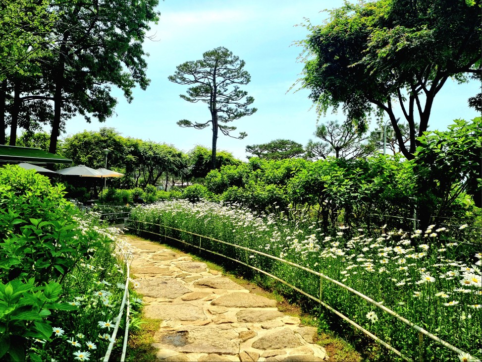 카페로 들어가는 길목이에요. 양쪽으로 데이지가 피어있어서 이때부터 좋더라고요.