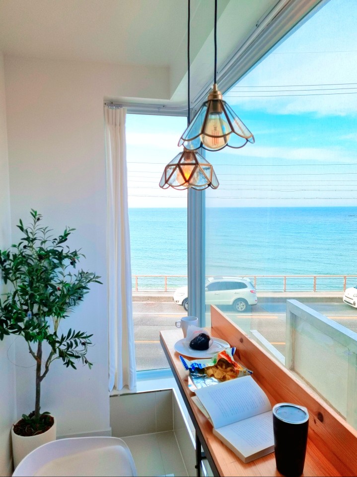 숙소 창가로 소돌해변이 잘 보여서 밖에 나가지 않고도 바다를 보며 쉴 수 있는 곳입니다.