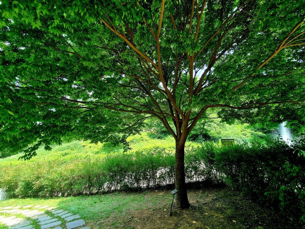 나무 기둥에 비해 사방으로 뻗은 나무 가자와 빼곡한 나뭇잎이 그늘을 만들어줘서 참 시원했습니다.