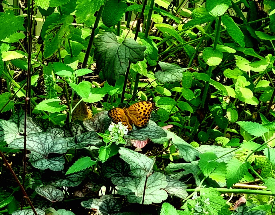 온실의 열린 문으로 나비 한마리가 들어와 식물들 사이를 자유롭게 날아다녔습니다.