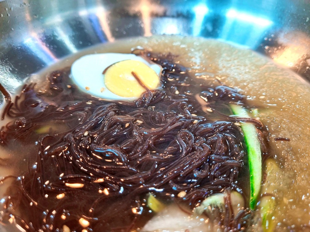 냉면은 살얼음 냉면이고, 육수 맛도 시원해서 더위가 식는 느낌입니다.