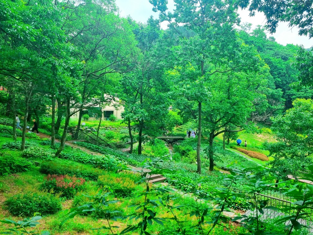 산책로로 내려오면, 초록으로 둘러쌓인 풍경을 볼 수 있습니다.