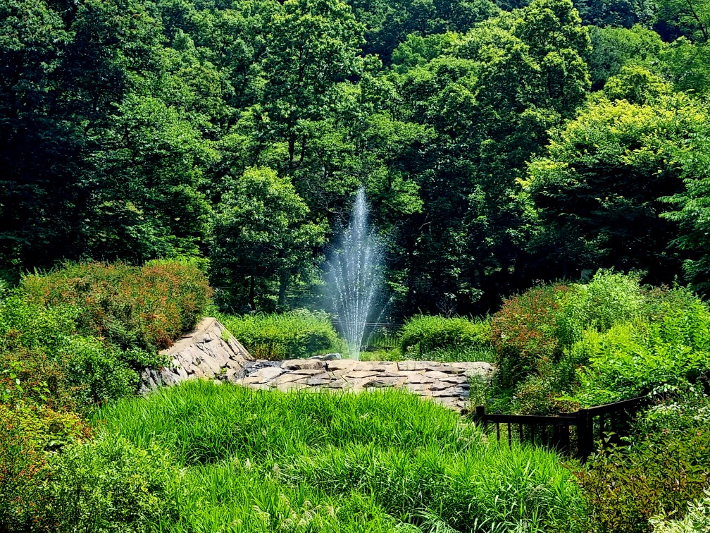 수목원의 관람로를 따라 안쪽으로 더 들어왔더니 사방댐쪽에 분수가 보였습니다.